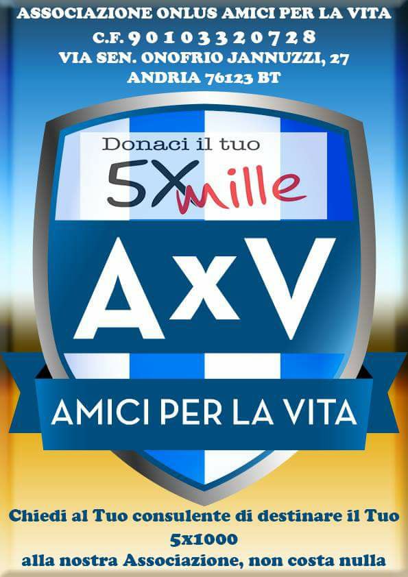 Scegli anche tu di donare il tuo 5 X Mille all'associazione Amici per la Vita O.N.L.U.S. come hanno già fatto in molti.